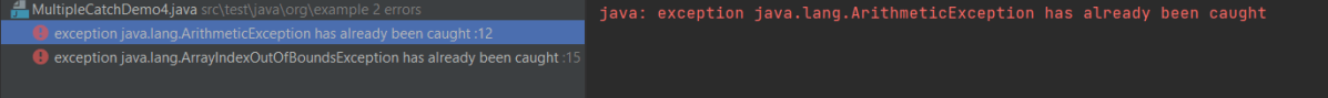Scenario 4 – In the below example, we do not maintain the order of preference in exceptions (child to parent), then compile time error occurs.