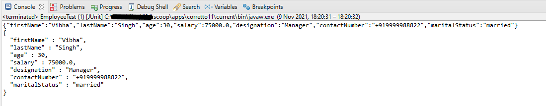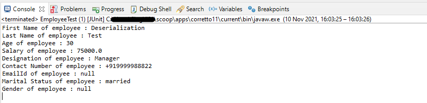 Now, let us create a SerializationTest with the above-mentioned POJO.