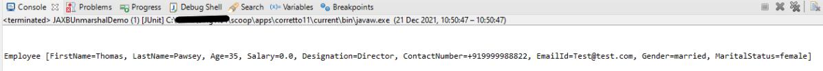 When we run the code above, we may check the console output to verify that we have successfully converted XML data into a Java object: