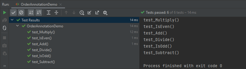 Here, test_Subtract() is not assigned any order value, so it is displayed as the last one in the last.