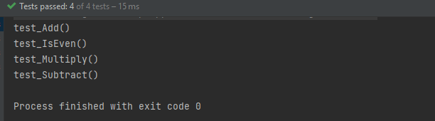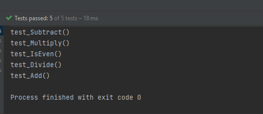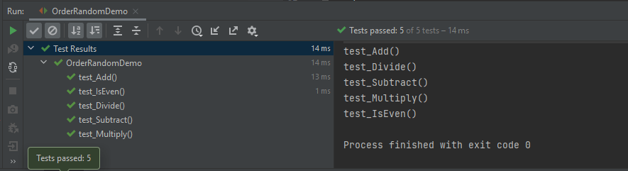 Notice the test output. The tests are executed in descending order. The result of the above program is