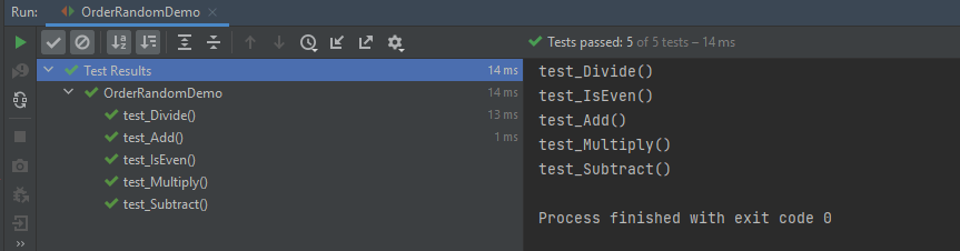 • Random – orders test methods pseudo-randomly and support the configuration of a custom seed