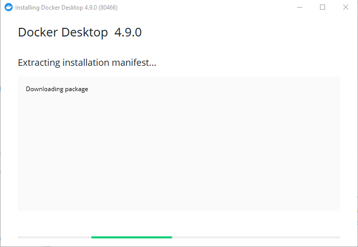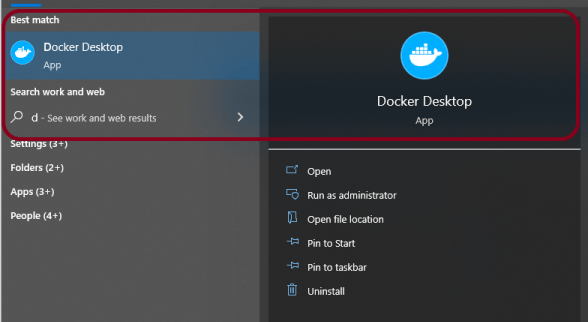 After the installation process is complete, the tool does not start automatically. To start the Docker tool, search for the tool, and select Docker Desktop in your desktop search results or Docker Desktop can be started from the start menu.