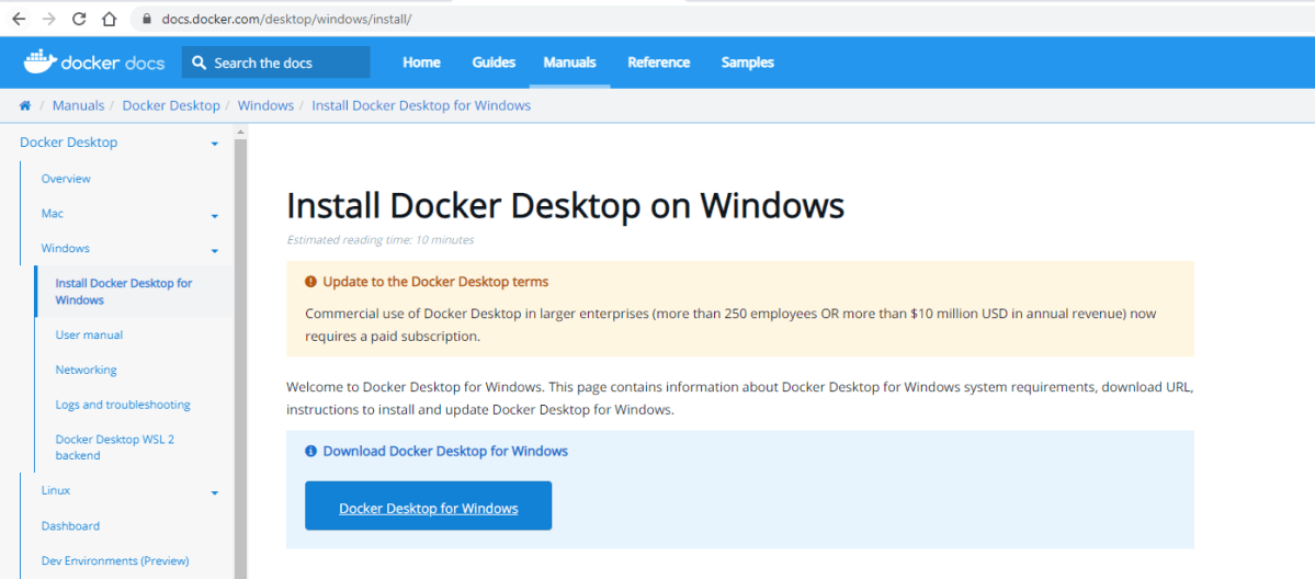 Docker Desktop is an easy-to-install application for your Mac or Windows environment that enables you to build and share containerized applications and microservices. Docker Desktop includes the Docker daemon (dockerd), the Docker client (docker), Docker Compose, Docker Content Trust, Kubernetes, and Credential Helper.