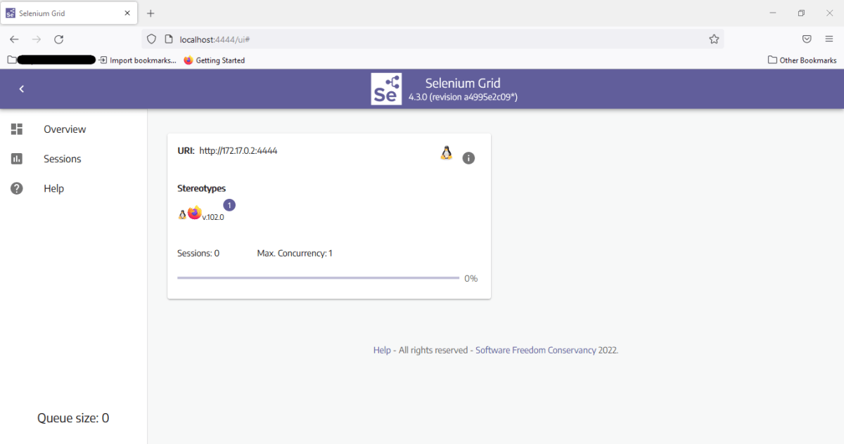 Open the browser and navigate to http://localhost:4444/. It reflects Selenium Grid UI, as shown below.