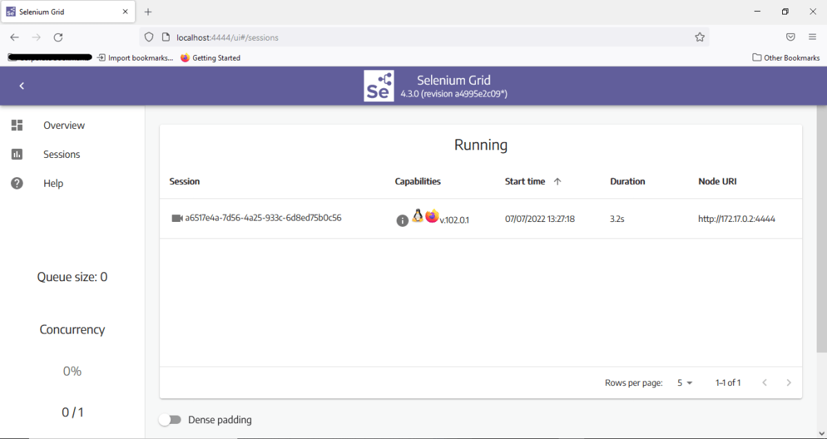Navigate to the sessions tab on the Selenium Grid UI upon running the command. It would reflect an active session.