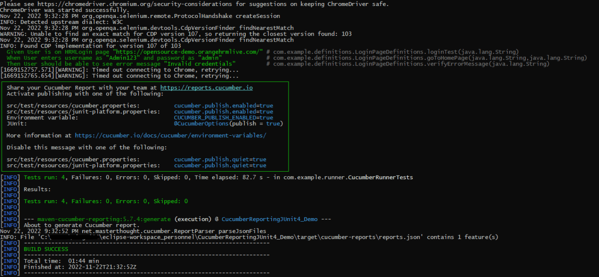 plugin= {"pretty", "json:target/cucumber-reports/reports.json",