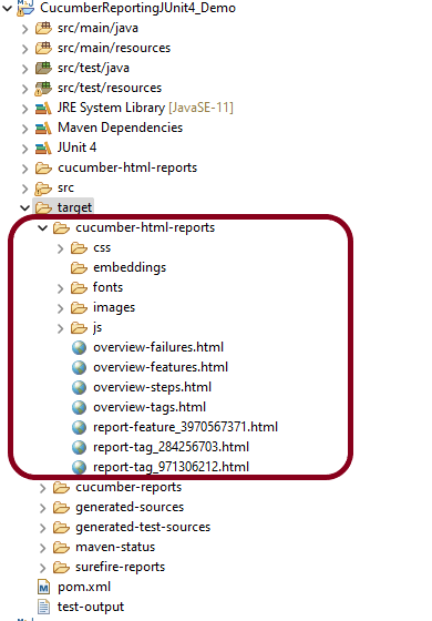 Refresh your project and check inside \target\cucumber-html-reports that the report generated with name feature-overview.