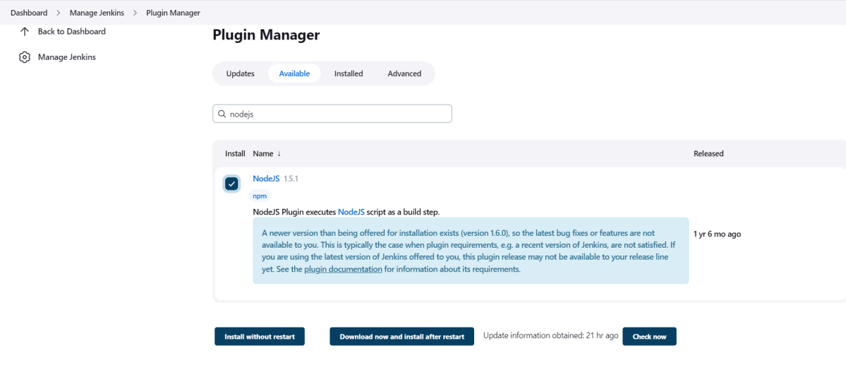 To generate a Performance Report in Jenkins, we need to download NodeJS Plugin. Please refer to this tutorial to install the plugin – How to install Plugins in Jenkins.