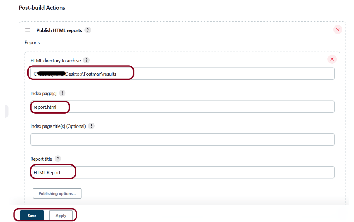 Scroll down to “Post Build Actions” and click on the “Add Post Build Actions” drop-down list. Select “Publish HTML reports“.