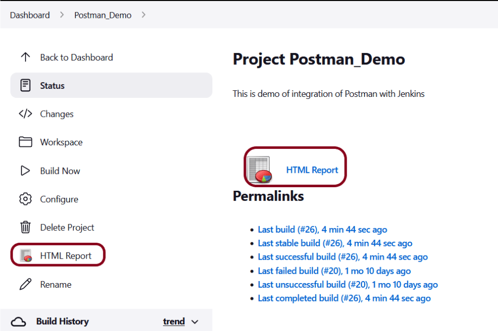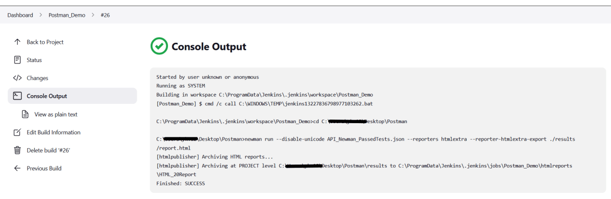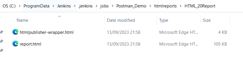 If you want to see where the report is saved on desktop, go to – C:\ProgramData\Jenkins.jenkins\jobs\Postman_Demo\htmlreports\HTML_20Report.
