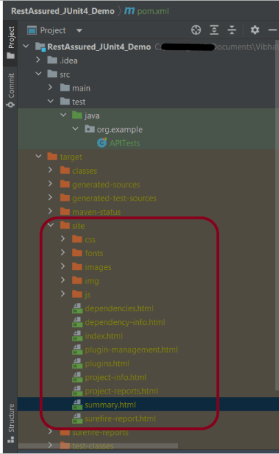 Maven Site Plugin creates a folder – site under the target directory, and the Maven Surefire Report plugin generates the JUnit Reports in the site folder. We need to run the tests through the command line to generate the JUnit Report.