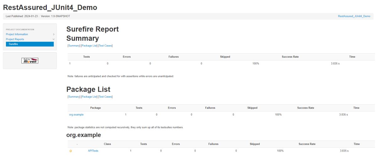 Below is an example of a Surefire Report. This report contains a summary of the test execution.