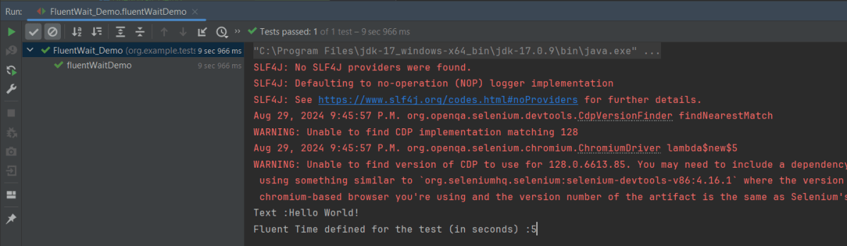 System.out.println("Fluent Time defined for the test (in seconds) :" + getWaitForTimeout().toSeconds());