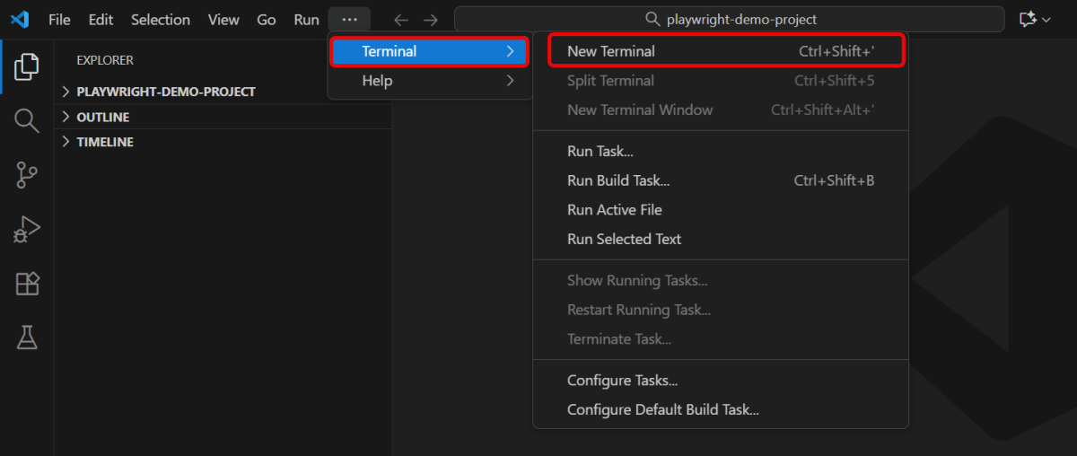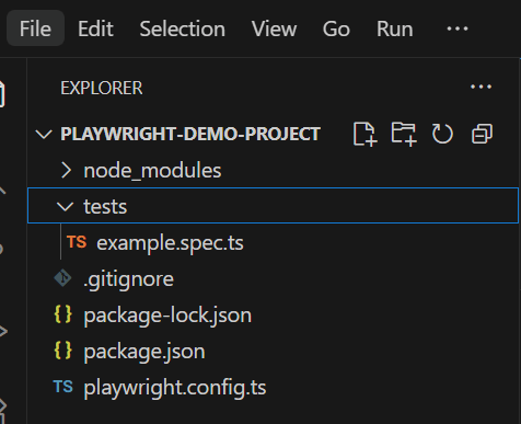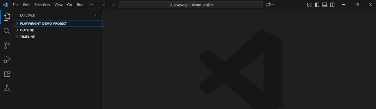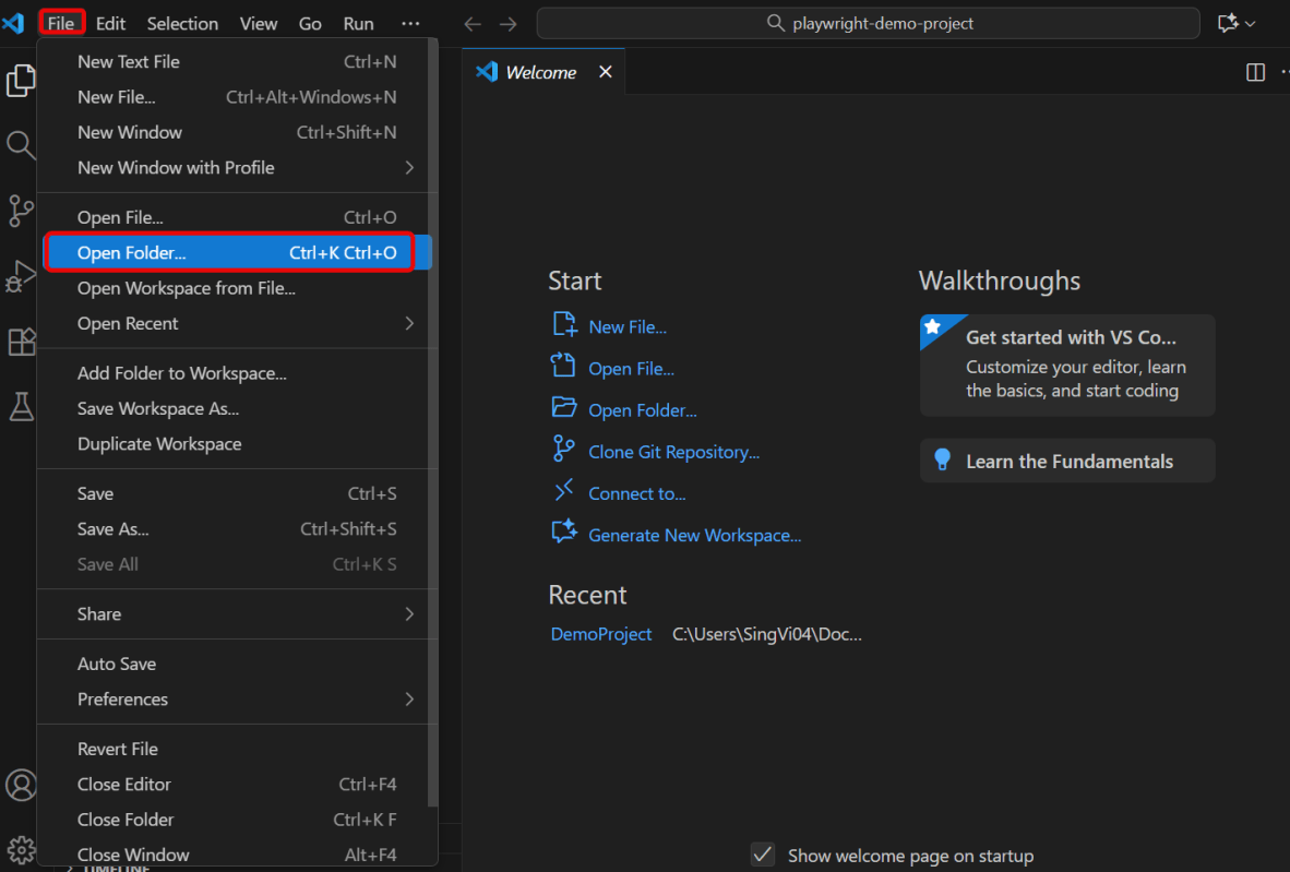Go to File and select Open Folder we have created earlier – playwright-demo-project.