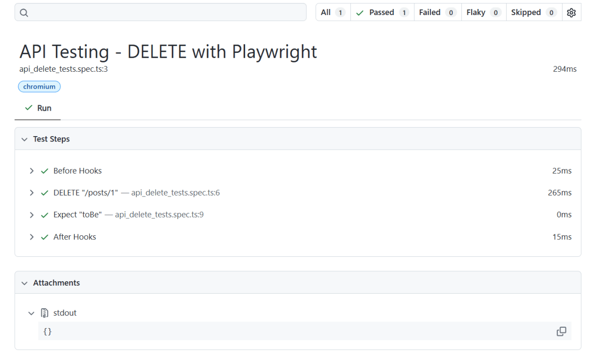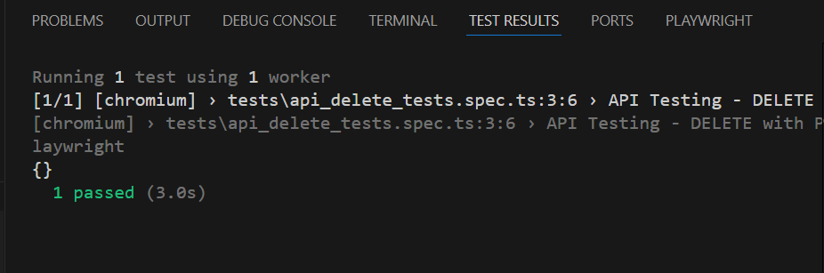 Here’s an example script demonstrating API testing for DELETE operation using Playwright:
