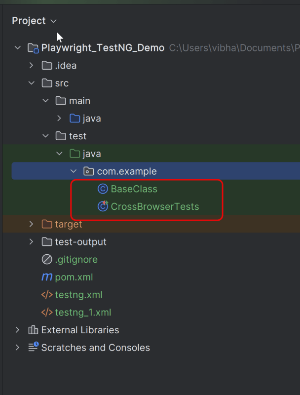 After adding the dependency, refresh the project. We will see that the Playwright jar files are downloaded in External Libraries.