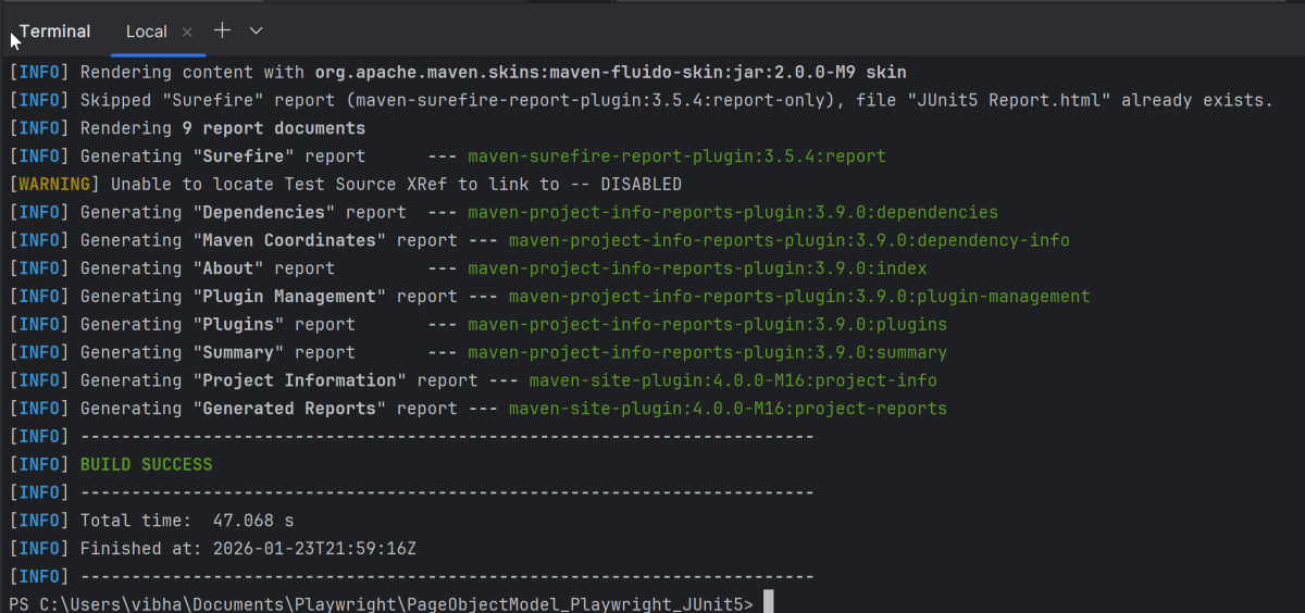 - Name of the Project – PageObjectModel_Playwright_JUnit5