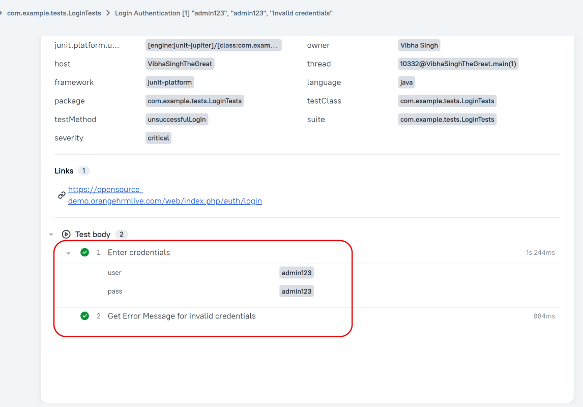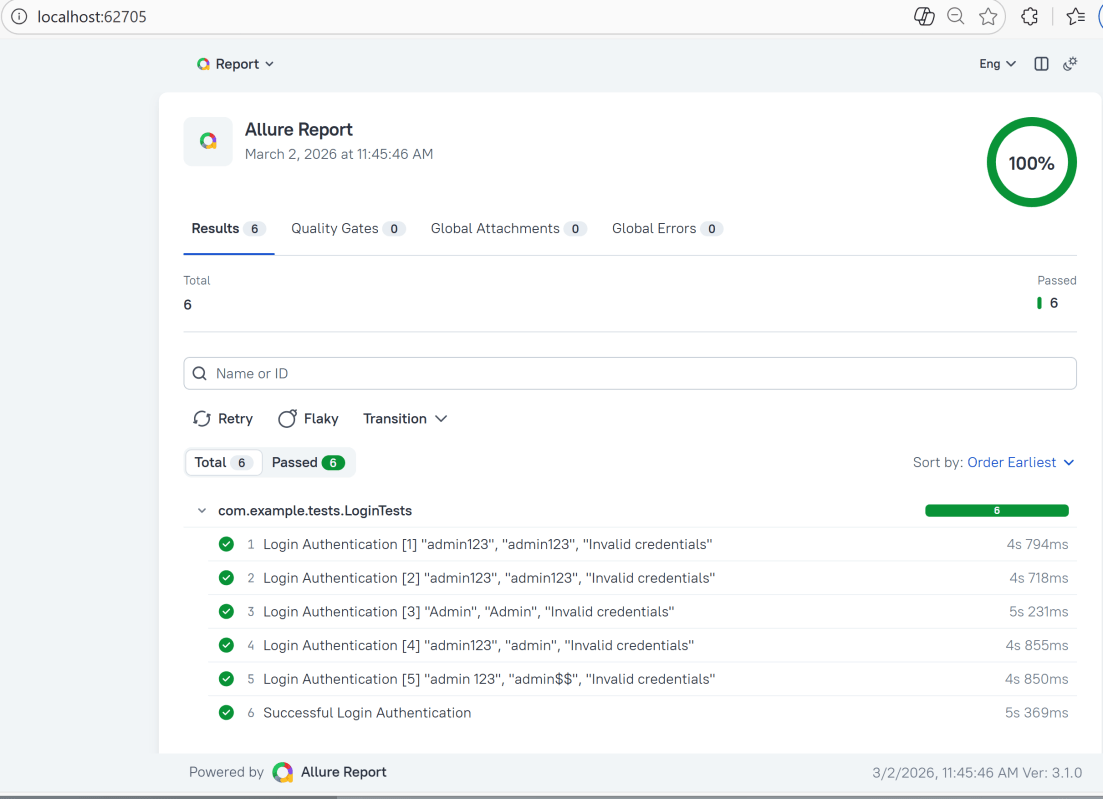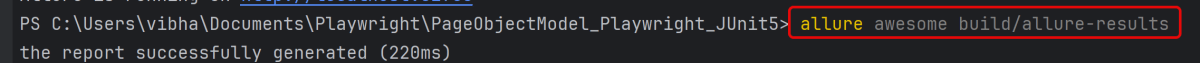 This will create the allure-results folder with all the test reports within build folder. These files will be used to generate Allure Report.