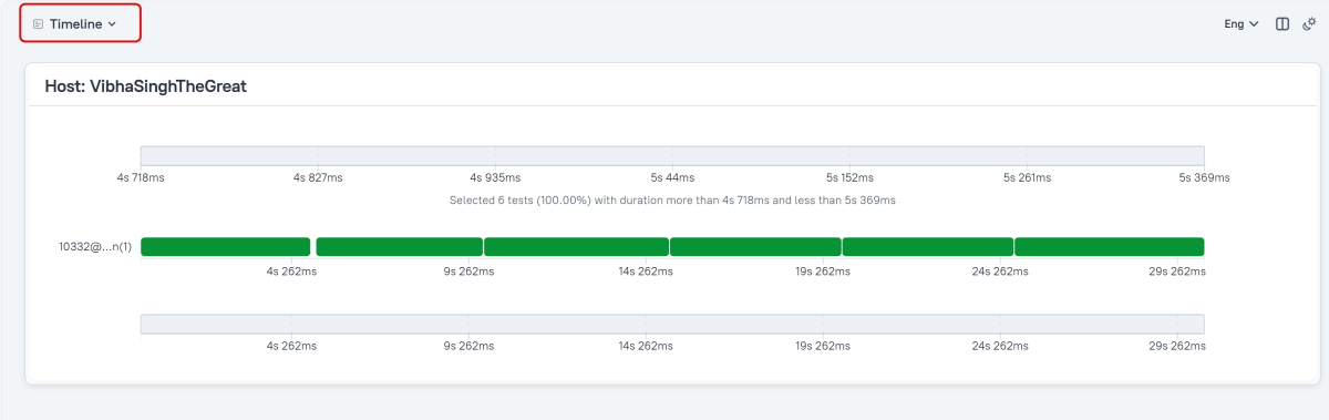The timeline tab visualizes retrospective test execution. Allure adaptors collect precise timings of tests. Here on this tab, they are arranged according to their sequential or parallel timing structure.