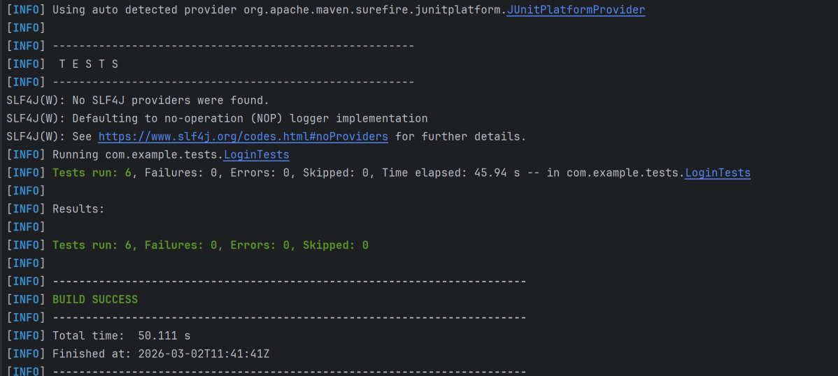 - Run tests → generate → view report – Execute mvn clean test, then run allure serve allure-results to build and open the HTML report.