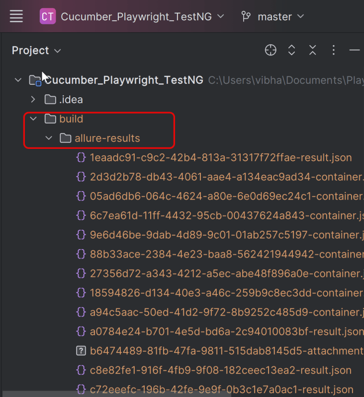 This will create the allure-results folder with all the test reports within build folder. These files will be used to generate Allure Report.