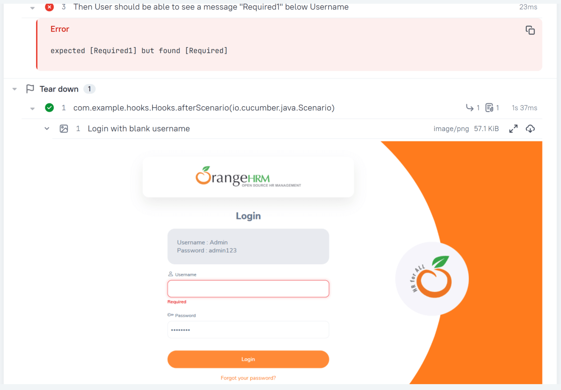 Then User should be able to see a message "Required1" below Username
