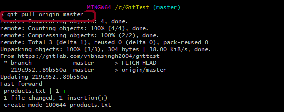 3. Fetches changes from the remote repository and merges them into the current branch.