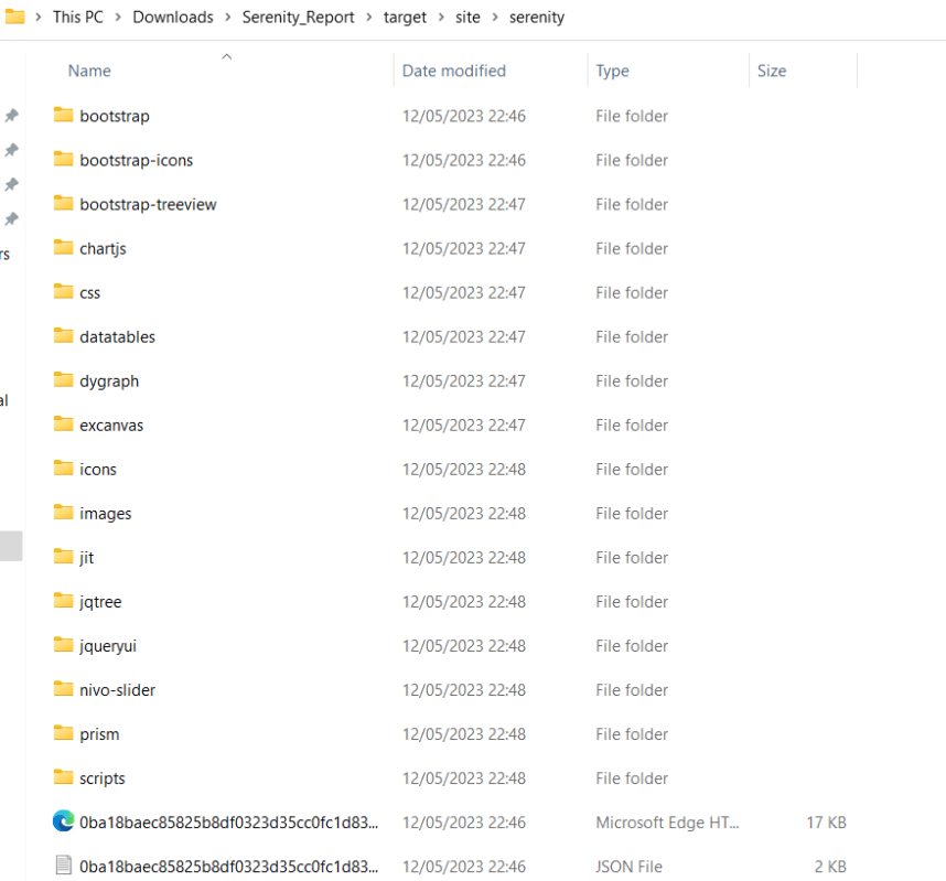 Once, will click on the download button, it will download “Serenity_Report.zip”. Unzip the folder and it looks like something as shown below: