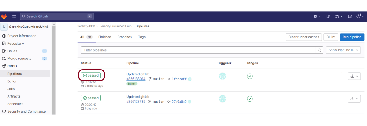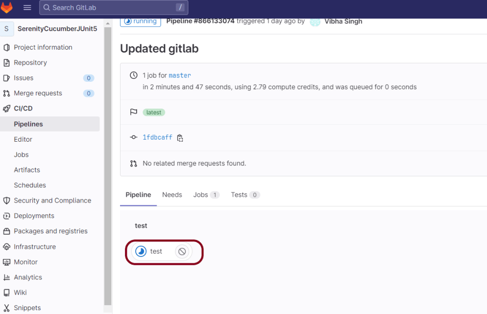 Congratulations. This tutorial has explained the steps to run Serenity tests in GitLab CI/CD. Happy Learning!!