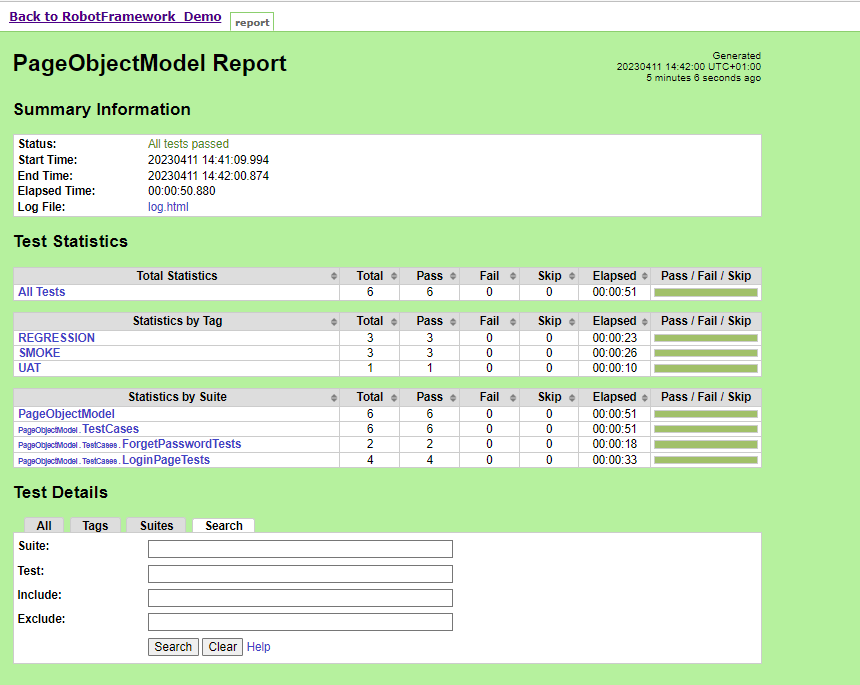 Once the execution is completed, we could see a link to view the “Test Report“.