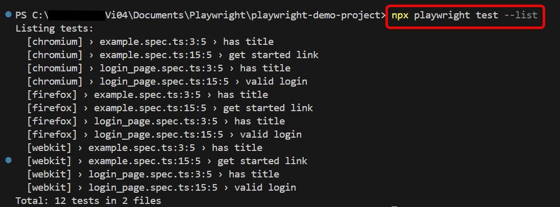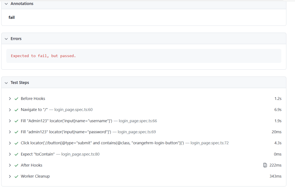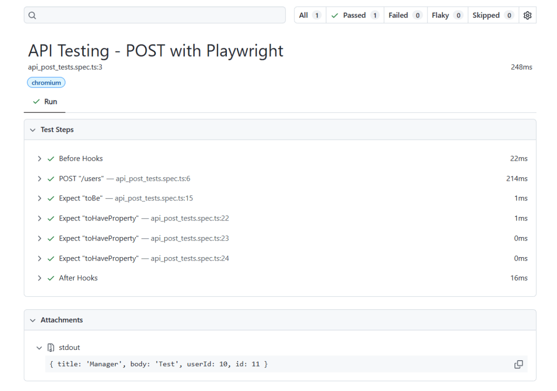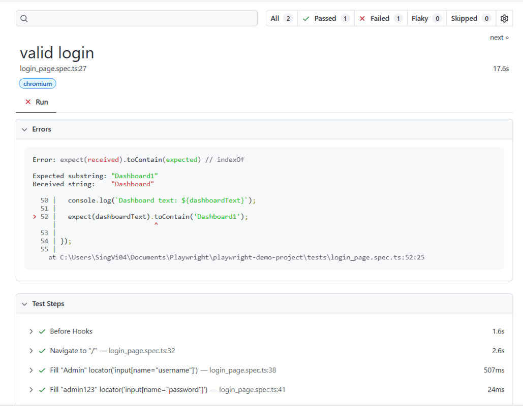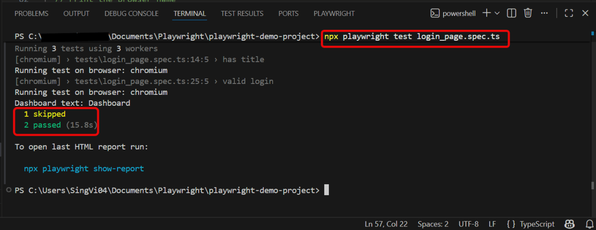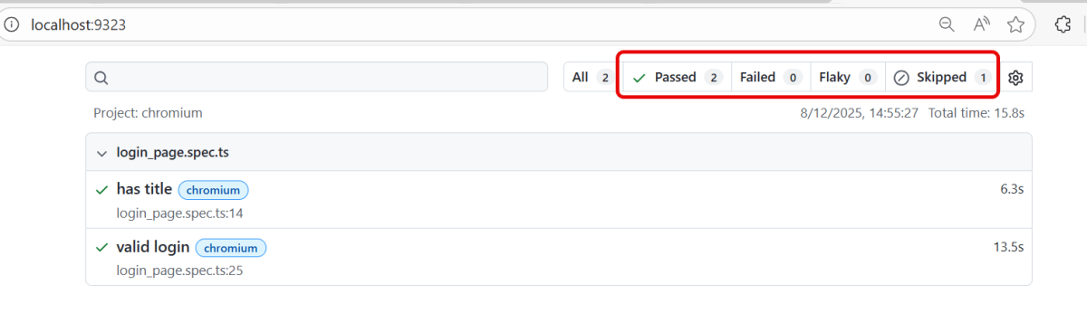 Playwright generates a test report after the execution of the tests. This test report can be viewed by using the below command: