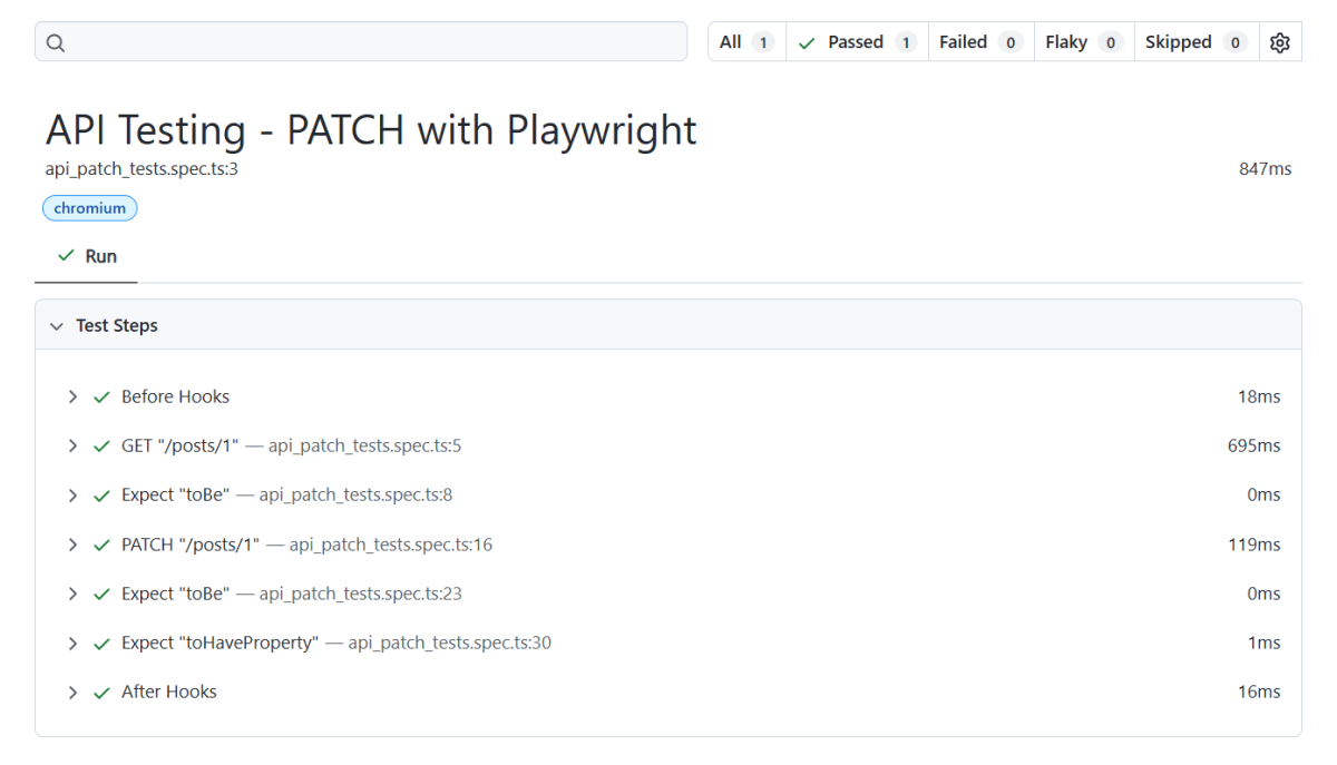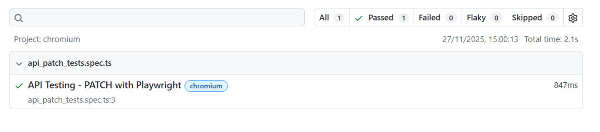 Here’s an example script demonstrating API testing for PATCH operation using Playwright: