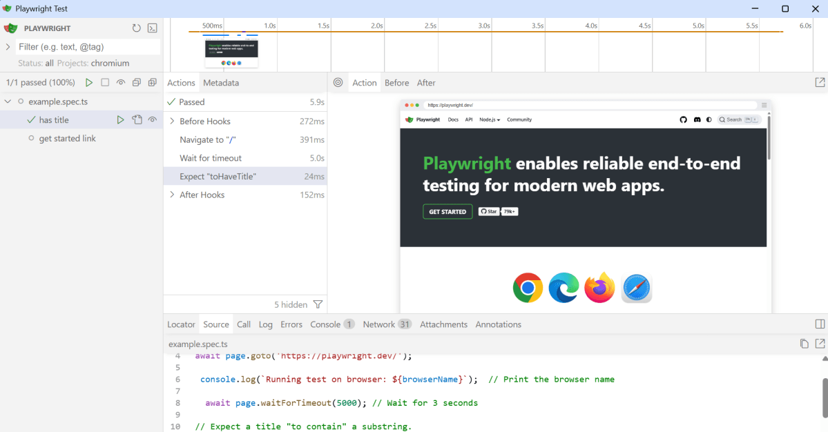 To know more about Playwright UI mode, please refer to this website – https://playwright.dev/docs.