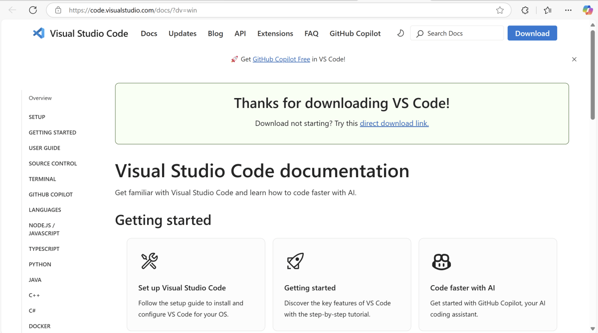 - Visual Studio for Code is already installed.
