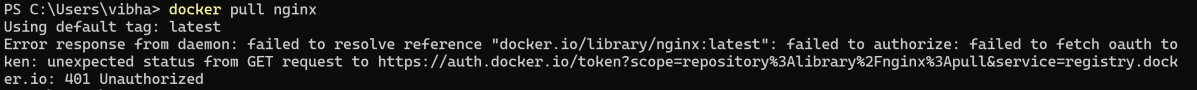 The error you’re seeing indicates that Docker is unable to authenticate when trying to pull the NGINX image from Docker Hub