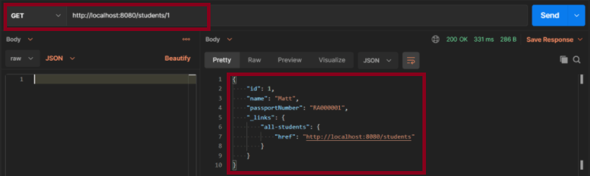A simple GET request to /students/{id} will invoke retrieveStudent with the extracted id value