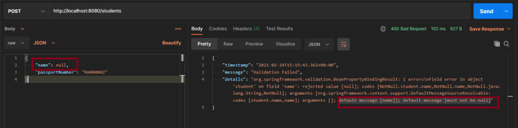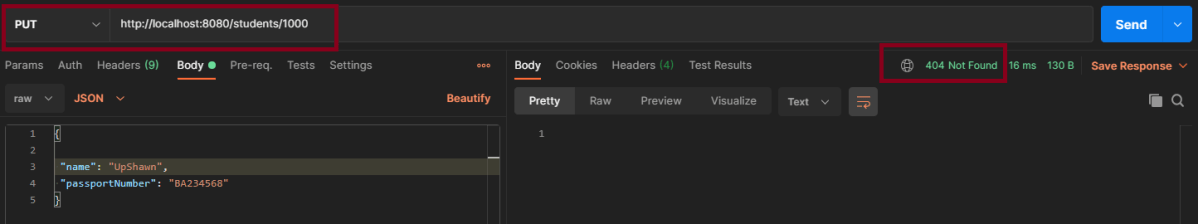 Scenario 3- Below picture shows how we can execute a Get Request Method for incorrect Student