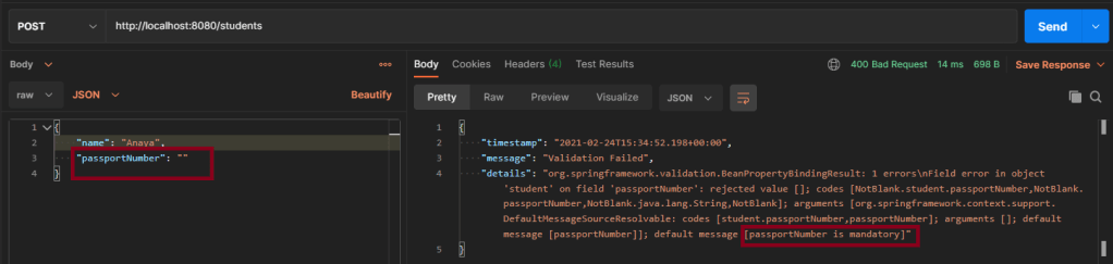 @NotBlank(message = "passportNumber is mandatory")