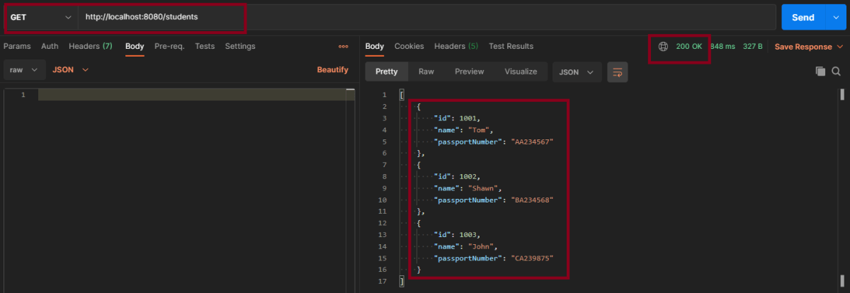 Retrieve all Students – @GetMapping(“/students”)