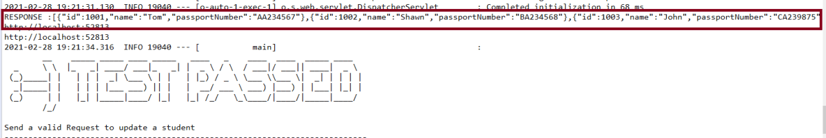 data.sql – Data is loaded from data.sql into Student table. Spring Boot would execute this script after the tables are created from the entities.
