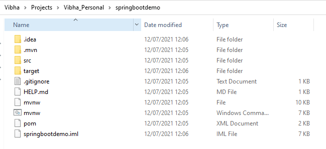 Below is the structure of a SpringBoot application project