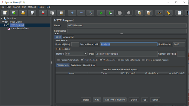 Below mentioned are the values used in HTTP Request to perform the test