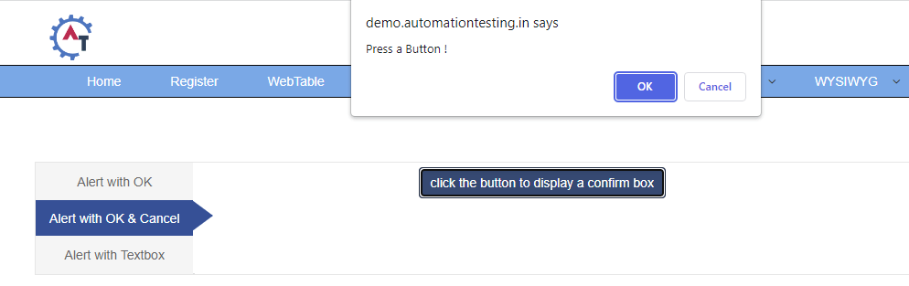 Below is an example that shows how to handle Confirmation Alert with Selenium.