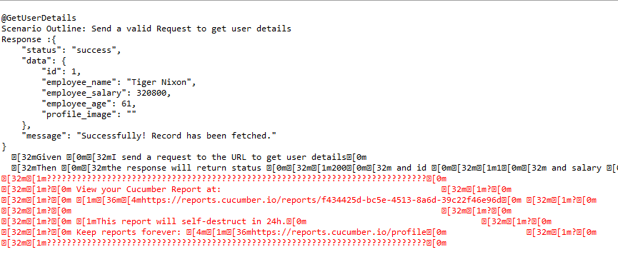 Below is the screenshot of the execution of Cucumber tests in Command-Line.