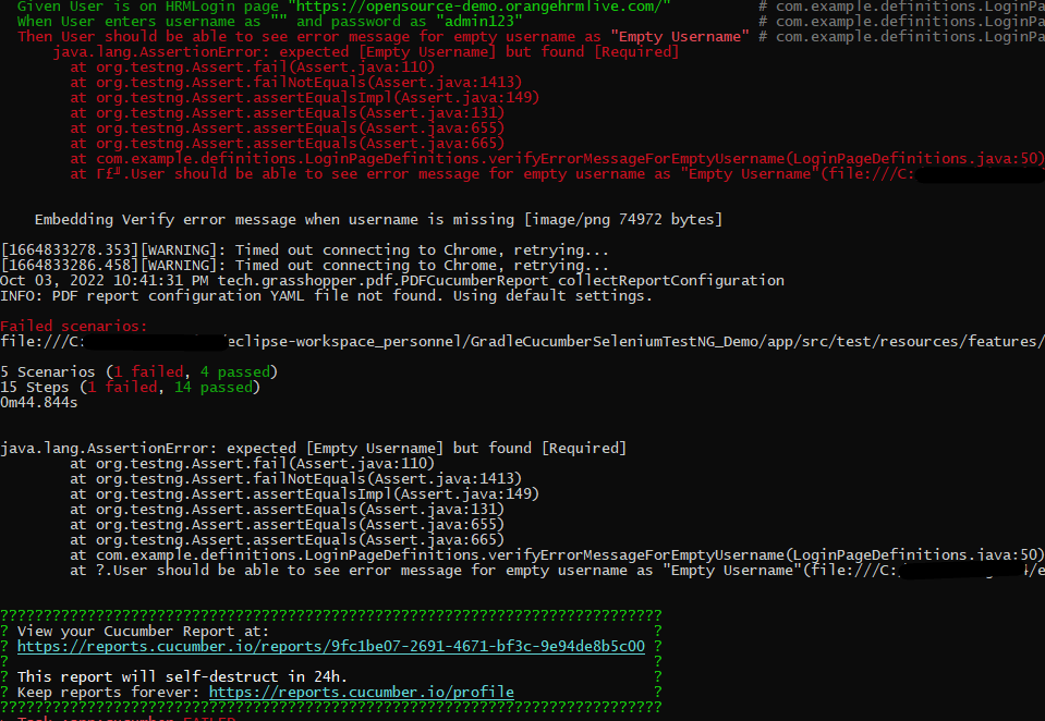 We need to create the extent.properties file in the src/test/resources folder for the grasshopper extent report adapter to recognize it. Using a property file for reporting is quite helpful if you want to define several different properties.