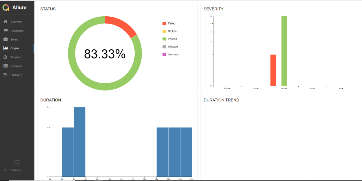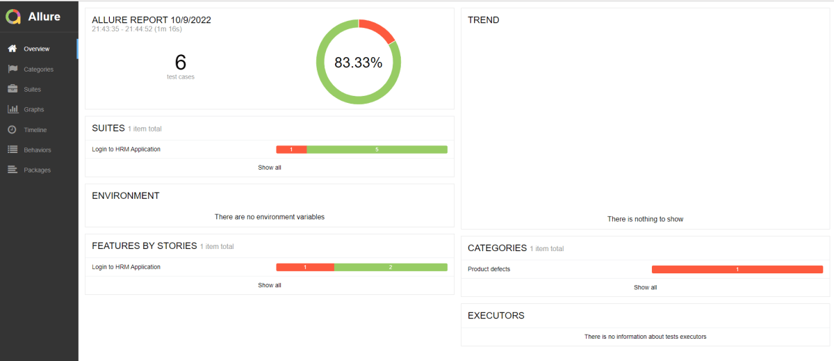 Right-click and open the ExtentHtml.html report with Web Browser. The report also has a summary section that displays the summary of the execution. The summary includes the overview of the pass/fail using a pictogram, start time, end time, and pass/fail details of features as shown in the image below.