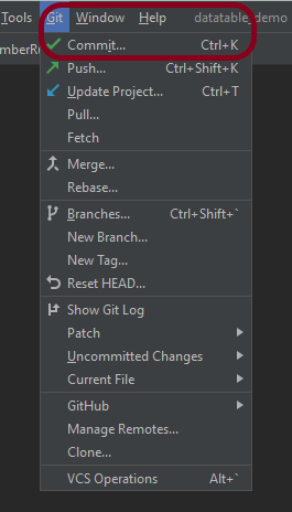 Step 2 – Go to Git option present at the top and then select “Commit” option.
