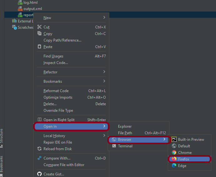 Right-click on report.html. Select Open In->Browser->Chrome(any browser of your wish).
