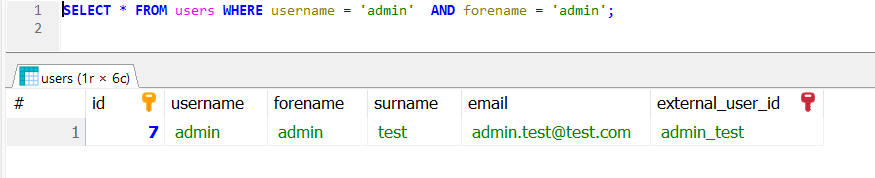 SELECT * FROM users WHERE username = 'admin' AND forename = 'admin';